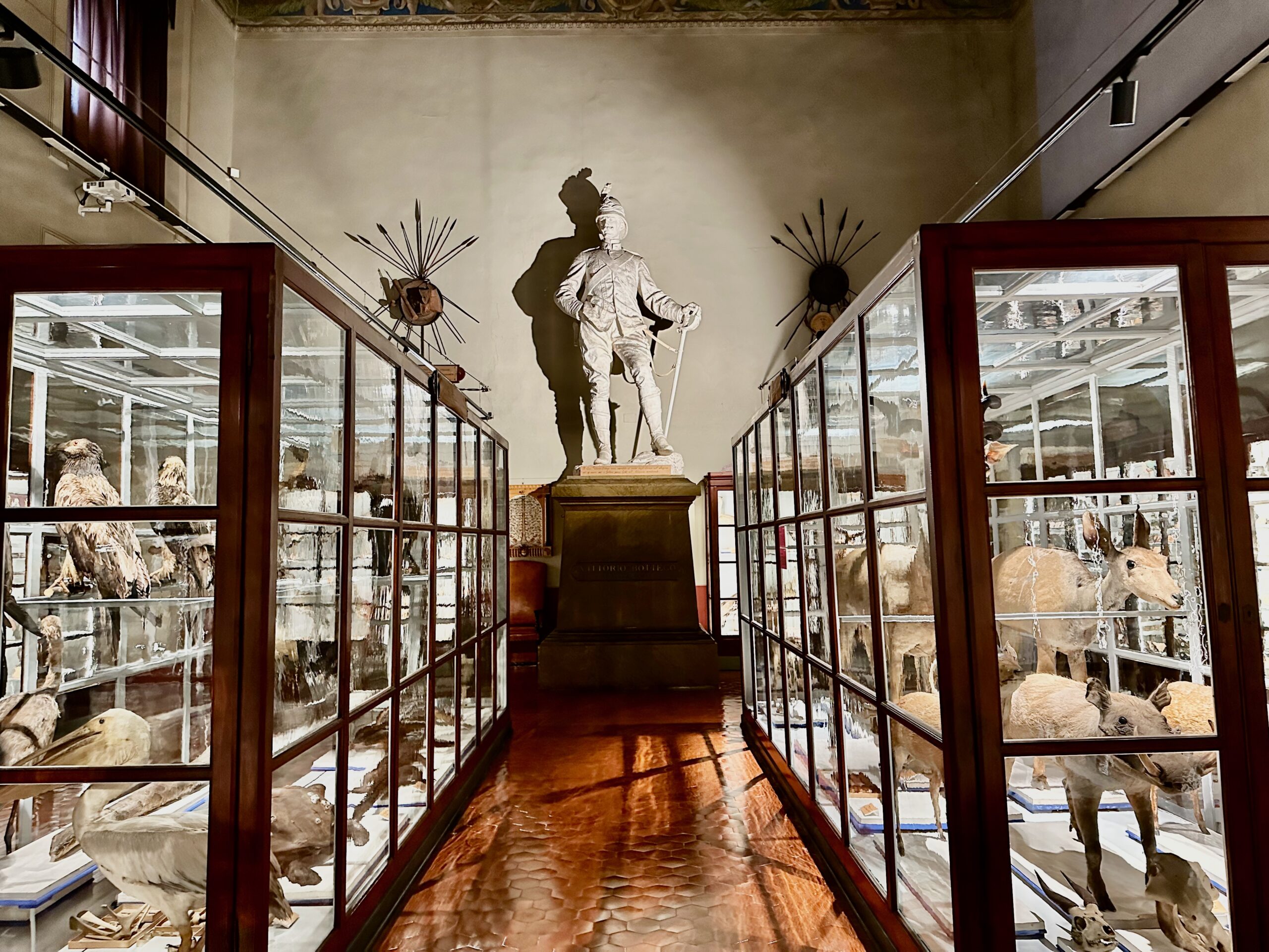 Anche il Regno d’Italia nella seconda metà dell’Ottocento cerca di emulare le altre potenze europee, progettando di avere colonie in Africa. Il primo passo è quello di mandare in avanscoperta un esploratore scienziato, con la scusa di fare ricerca e informazioni. Così da Parma nel 1887 parte il militare Vittorio Bottego (1860-1897) per l’Eritrea. Non è uno scienziato, ma viene incaricato di portare a casa esemplari della fauna dell’Eritrea (soprattutto uccelli e altri mammiferi). Il materiale da lui portato si trova in una grande sala del MUST, in cui troneggia anche il calco in gesso del monumento a lui dedicato, nella piazza antistante alla stazione ferroviaria. Il MUST cerca di rimettere in una giusta luce la figura di questo personaggio, morto in un’imboscata in Etiopia. La sua missione era legata al colonialismo italiano, questo è indubbio. Ma tentò di dare anche un contributo alla scienza.